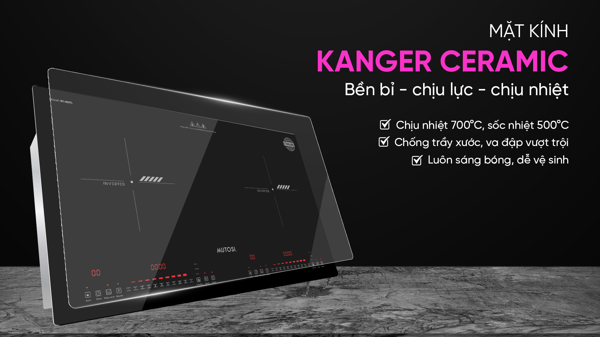 Mặt kính Kanger Ceramic cao cấp có khả năng chịu nhiệt đến 700 độ C, chịu sốc nhiệt đến 500 độ C
