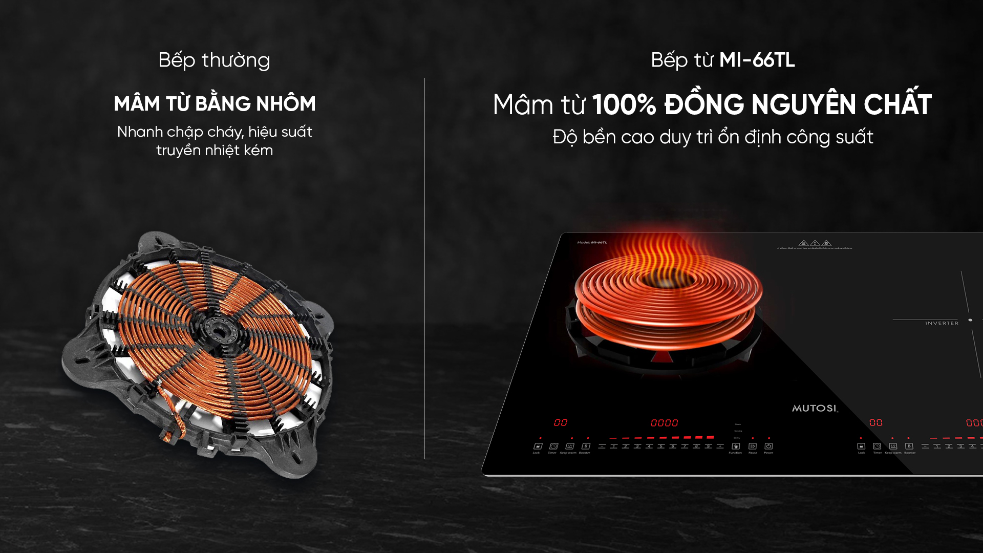 MI-66TL được trang bị mâm từ chất lượng cao, làm 100% bằng đồng, đảm bảo khả năng dẫn nhiệt nhanh, duy trì nhiệt độ ổn định trong quá trình nấu nướng, đồng thời giúp tăng tuổi thọ bếp từ