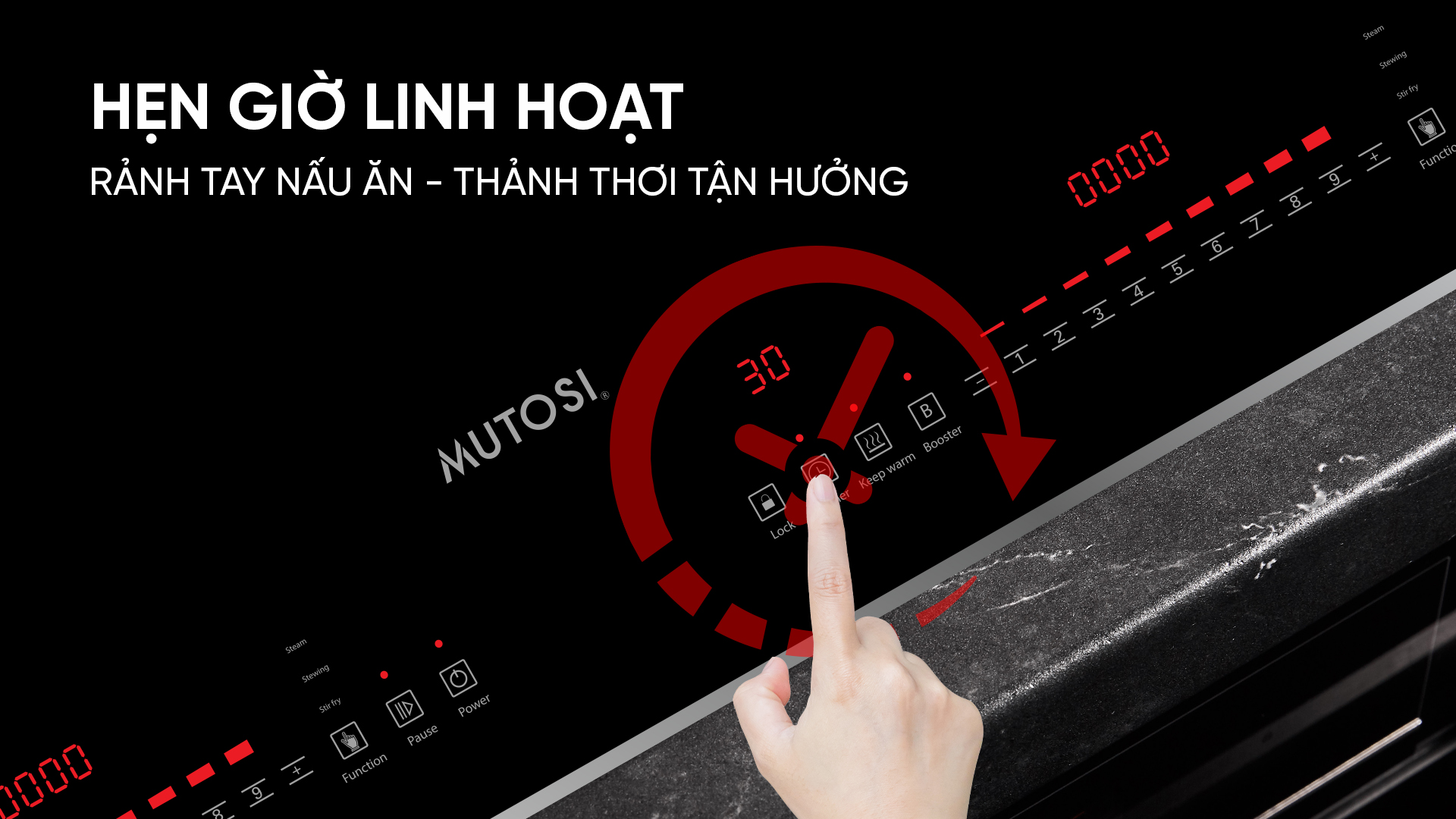 Chế độ hẹn giờ thông minh giúp bạn có thể chủ động thời gian nấu nướng. Chỉ cần bật bếp, lựa chọn hẹn giờ và yên tâm làm việc khác, bếp sẽ tự động tắt khi món ăn đã hoàn thành.