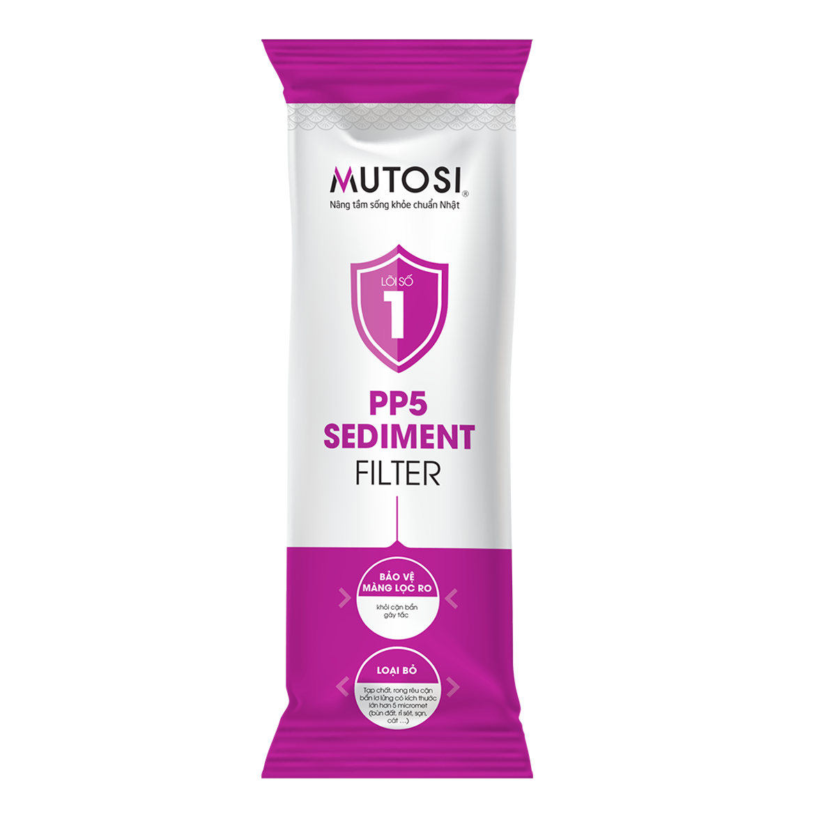 - Lõi số 1 - Lõi đúc PP5 micron giúp loại bỏ tạp chất, rong rêu cặn bẩn lơ lửng có kích thước lớn hơn 5 micron (bùn đất, rỉ sét, sạn, cát...)