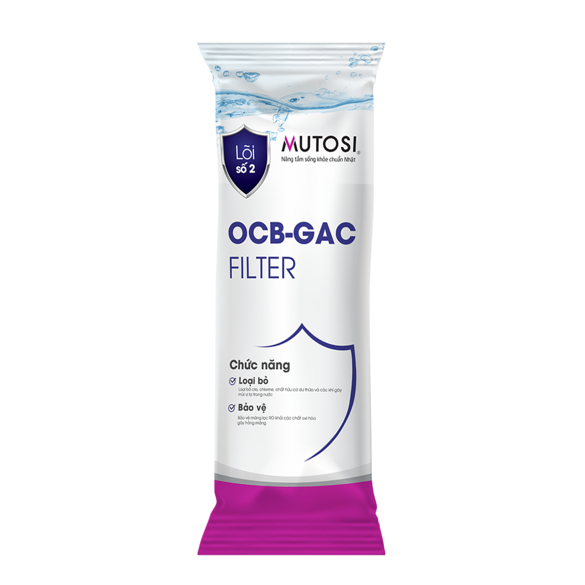 - Lõi số 2 – OCB-GAC loại bỏ Clo, Clorine, chất hữu cơ dư thừa, các chất khí gây mùi vị lạ trong nước