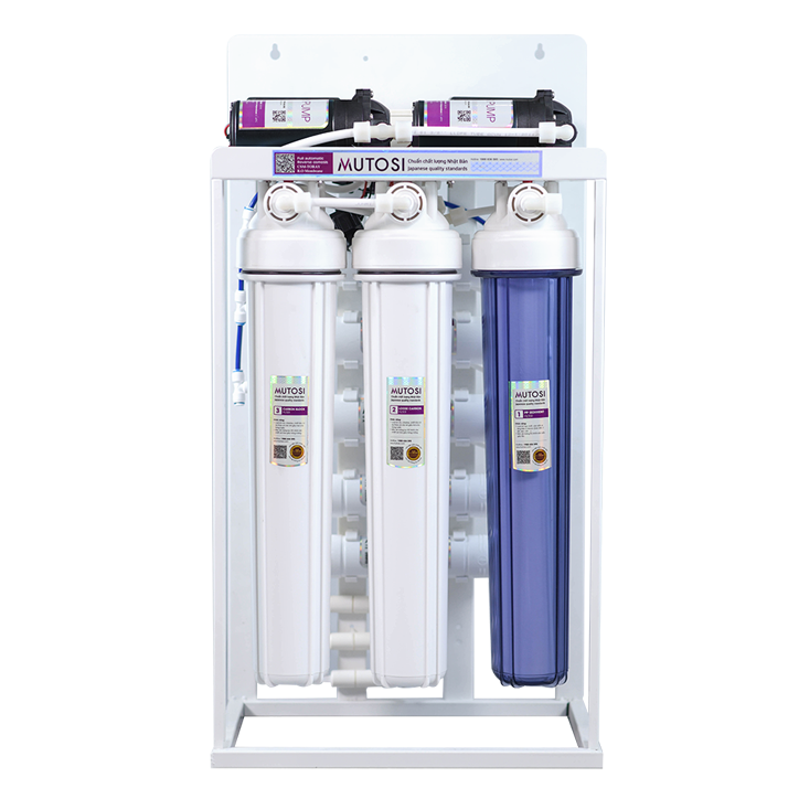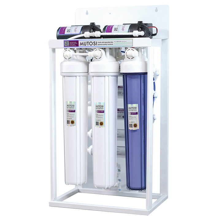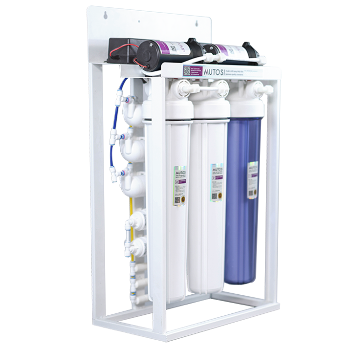 Máy lọc nước Bán công nghiệp Mutosi 50l/h sở hữu 8 cấp lọc, sử dụng 4 màng RO MUTOSI 75 GPD, nhập khẩu trực tiếp từ Hàn Quốc, có khả năng loại bỏ hầu hết vi khuẩn, Amip, Asen, các ion kim loại nặng gây hại, các ion kim loại nặng, chất hữu cơ gây mùi và các tạp chất khác cho nguồn nước hoàn toàn tinh khiết.