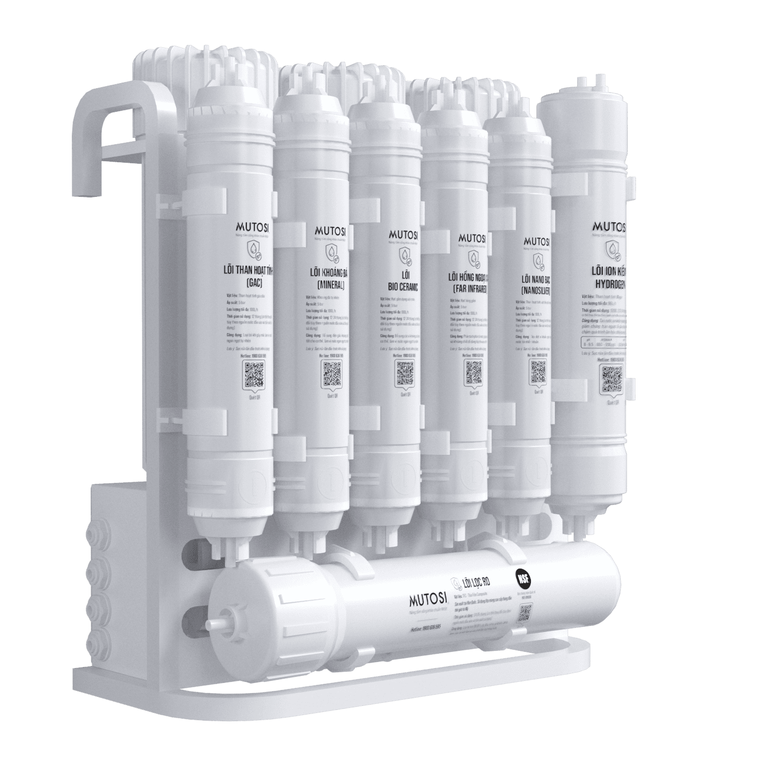 - Lọc sạch hơn nhờ màng lọc RO Mutosi Slitec đạt chứng nhận toàn cầu NSF/ANSI58 - tiêu chuẩn cao nhất cấp cho màng RO bởi tổ chức NSF (tổ chức hợp tác về an toàn thực phẩm và nước uống trực thuộc WHO), đồng thời được công bố chính thức trên website của NSF