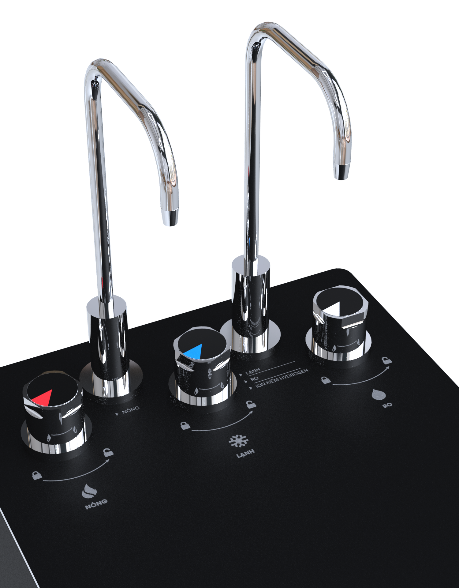 - 1 vòi lấy nước RO nguội; nước RO đã được làm lạnh (8-15°C) hoặc nước ion kiềm Hydrogen khoáng.