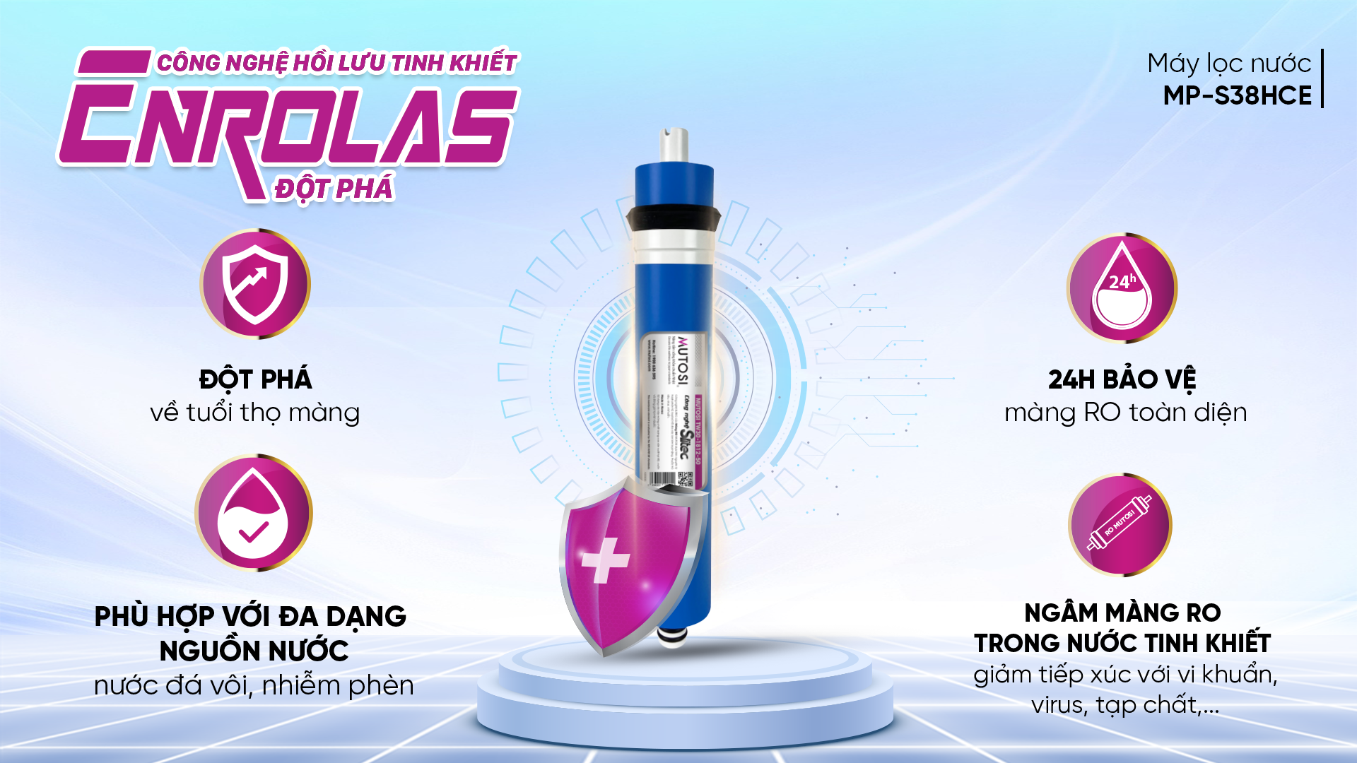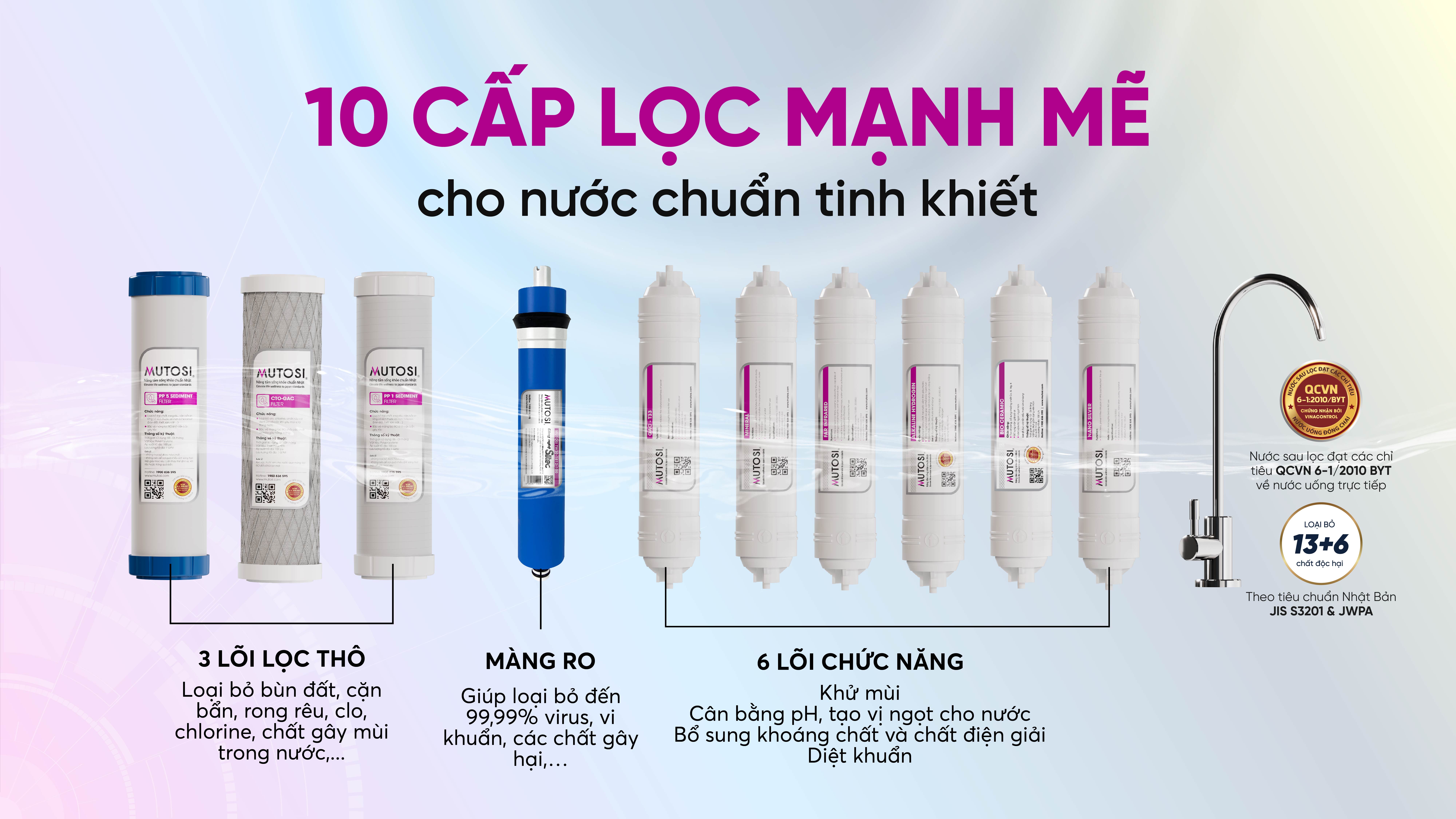 Với 6 lõi chức năng, máy lọc nước MP-S38HCE cung cấp các khoáng chất cần thiết cho cơ thể và diệt khuẩn một cách hiệu quả: