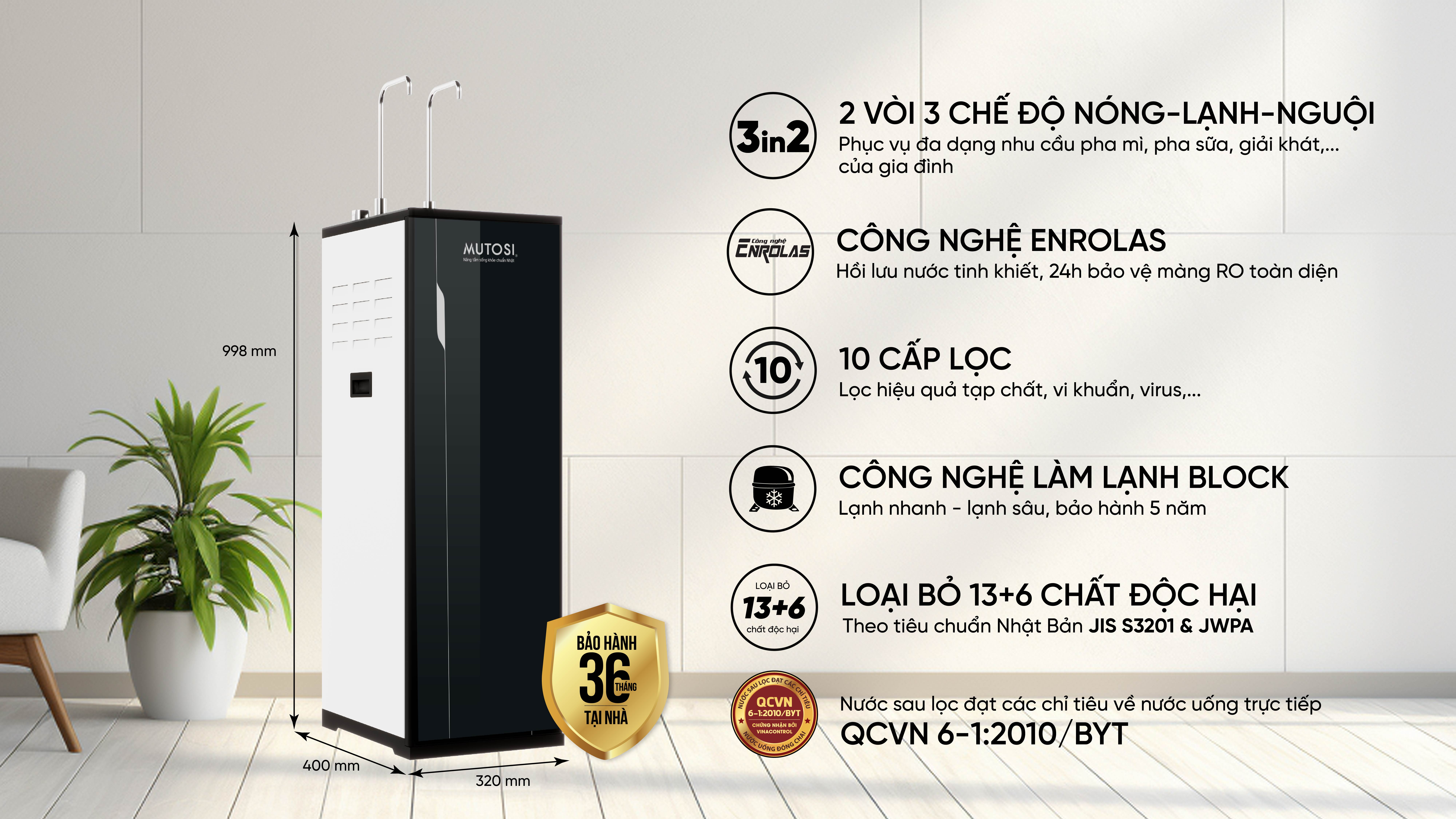 Máy lọc nước nóng lạnh nguội Enrolas Mutosi MP-S38HCE