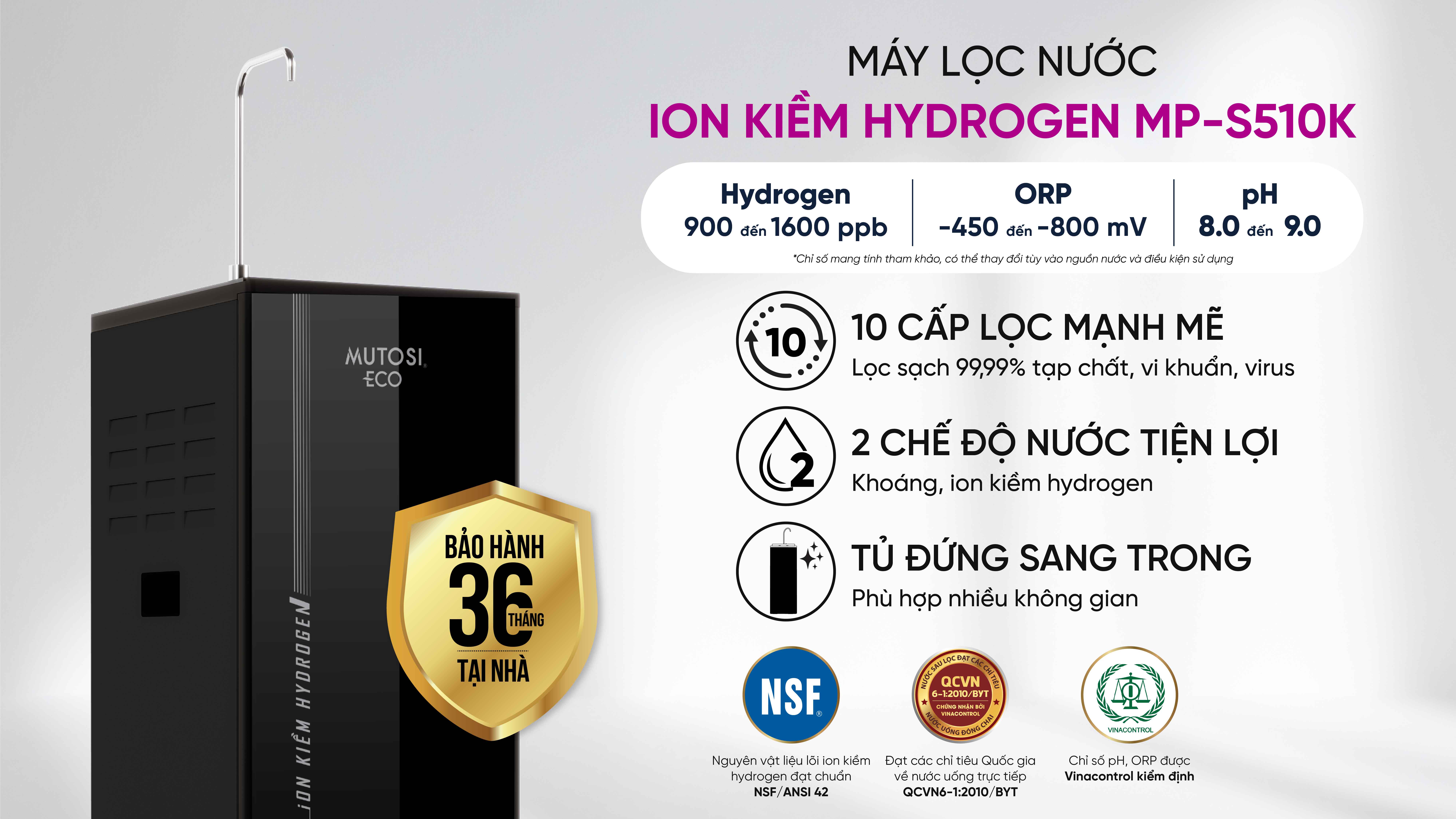 Máy lọc nước ion kiềm hydrogen Mutosi MP-S510K