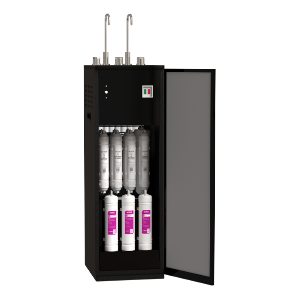 - 3 chế độ nước luôn sẵn sàng cho mọi nhu cầu của gia đình nhờ các bìnhchứa dung tích lớn: 7.5L (nguội tinh khiết), 1.5L(lạnh) và 1.0L (nóng). Đặc biệt, người dùng có thể lấy nước RO ngay cả khi gặp sự cố mất điện