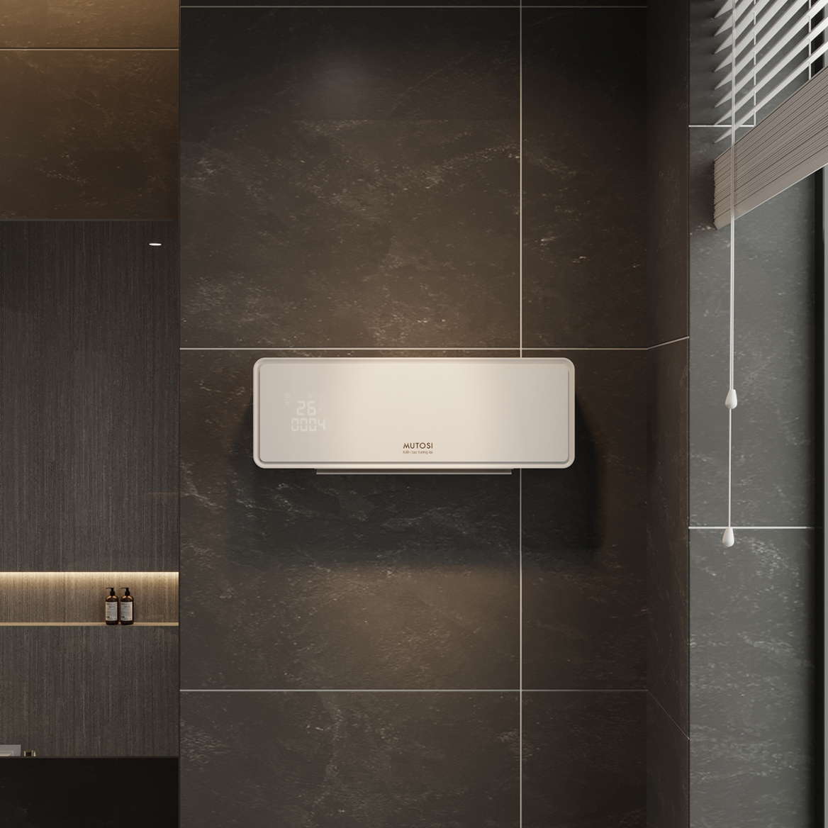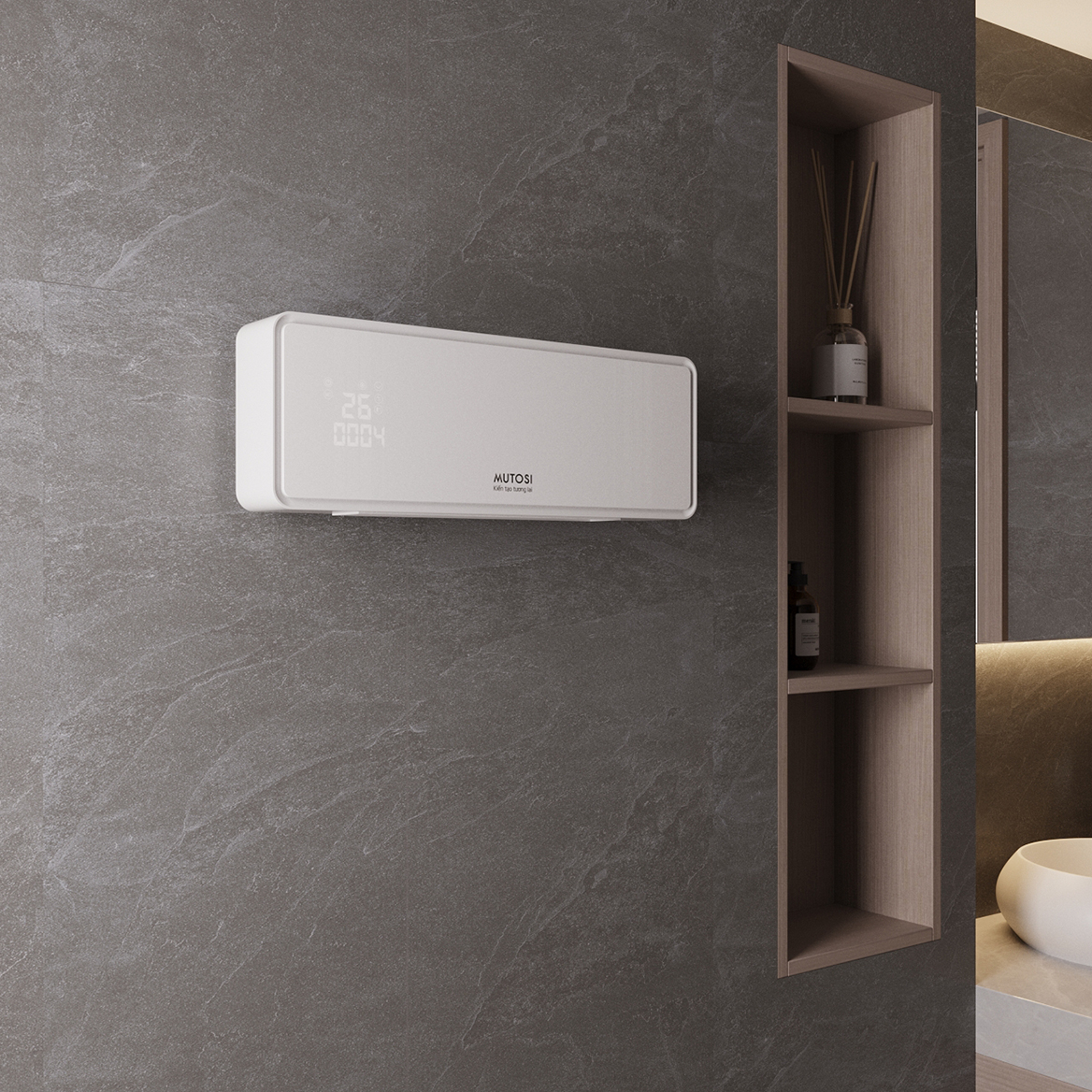 Kiểu dáng treo tường phù hợp với mọi không gian như phòng khách, phòng ngủ, nhà tắm..., tiết kiệm diện tích tối đa.