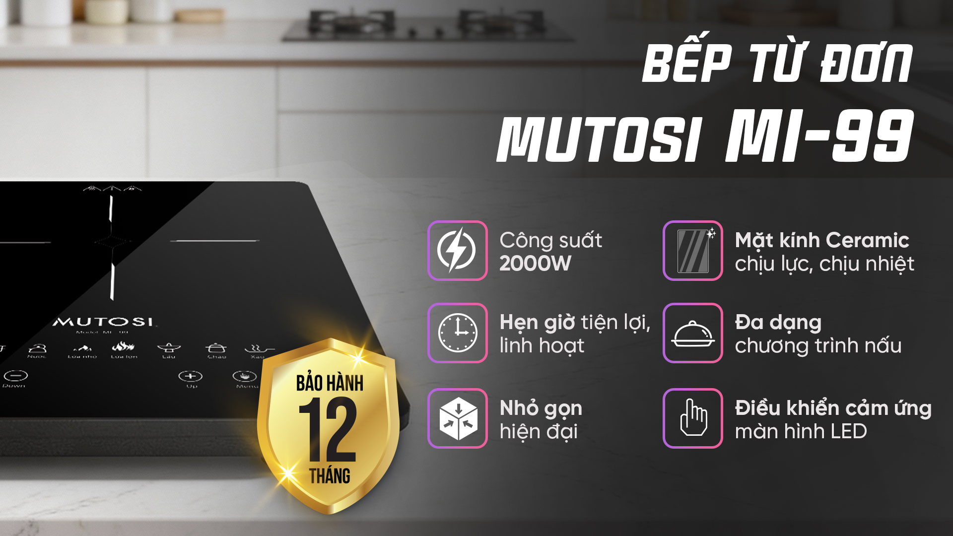 Bếp từ đơn MI-99 không chỉ ghi điểm nhờ thiết kế tinh tế và gọn nhẹ mà còn chinh phục người dùng bởi hiệu suất nấu nướng mạnh mẽ, bảng điều khiển cảm ứng LED dễ sử dụng và mặt kính bền đẹp theo thời gian. Với đầy đủ tính năng cần thiết như chức năng hẹn giờ, nhiều chương trình nấu, công suất lớn 2000W, MI-99 là lựa chọn lý tưởng cho gia đình, nhân viên văn phòng hoặc những ai thường xuyên nấu ăn cần sự tiện lợi nhỏ gọn hay tụ tập gia đình bạn bè ăn uống tại nhà.