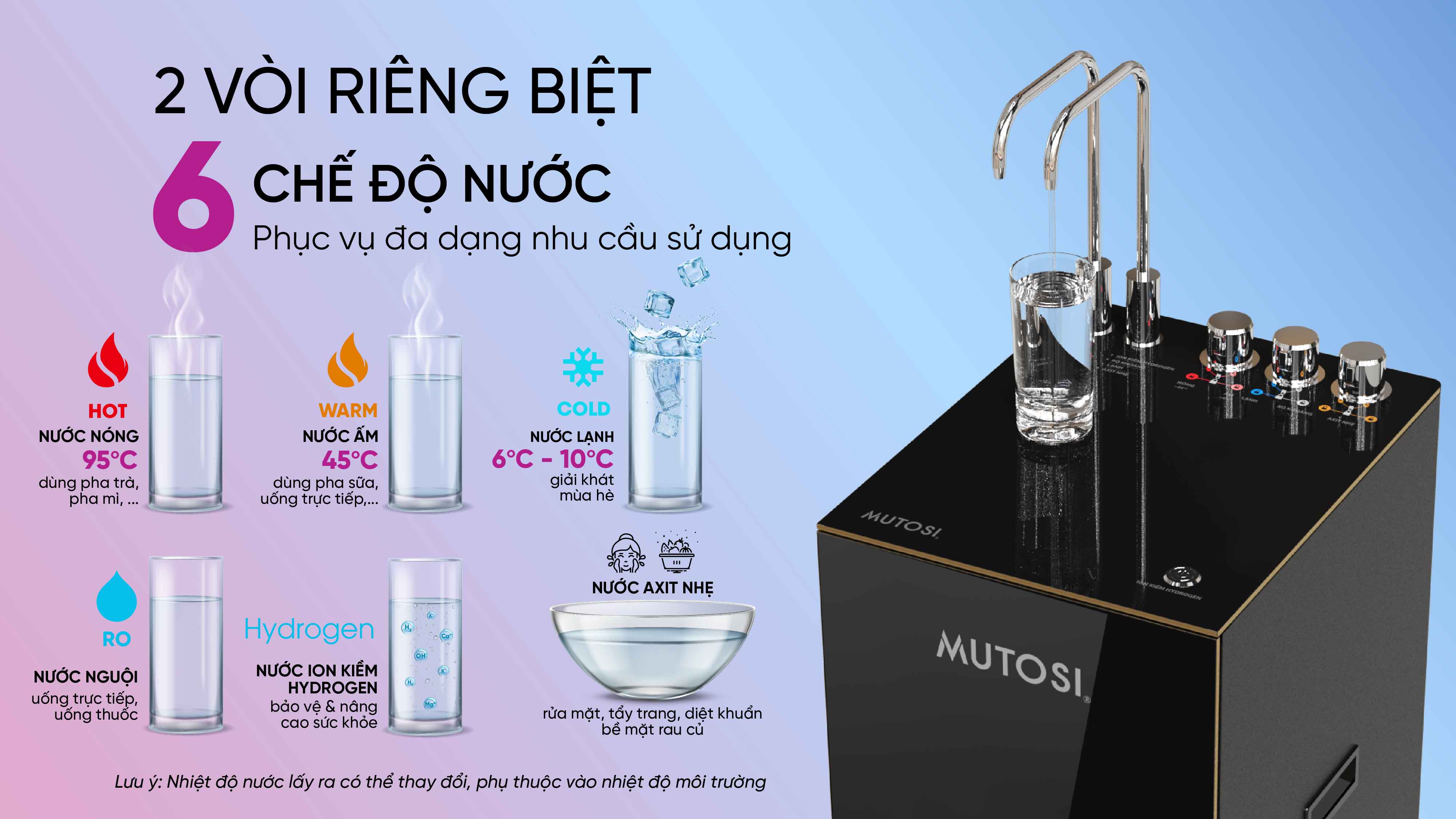 ** Lưu ý: Nhiệt độ nước lấy ra có thể thay đổi, phụ thuộc vào nhiệt độ môi trường