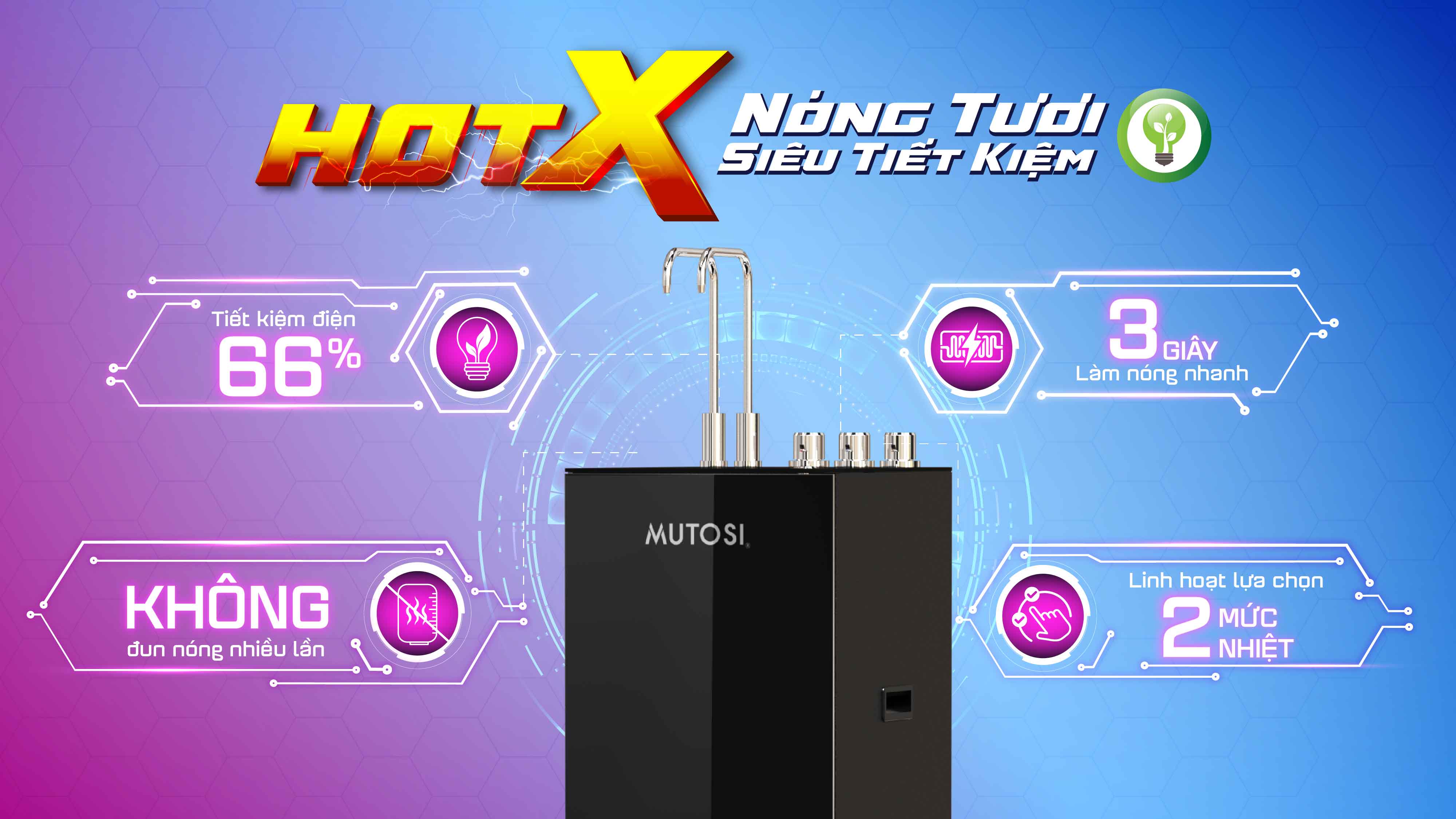 Bước tiến mới cho trải nghiệm tiện nghi, HotX – công nghệ nóng tươi từ Mutosi, gia nhiệt tức thì, tiết kiệm điện năng