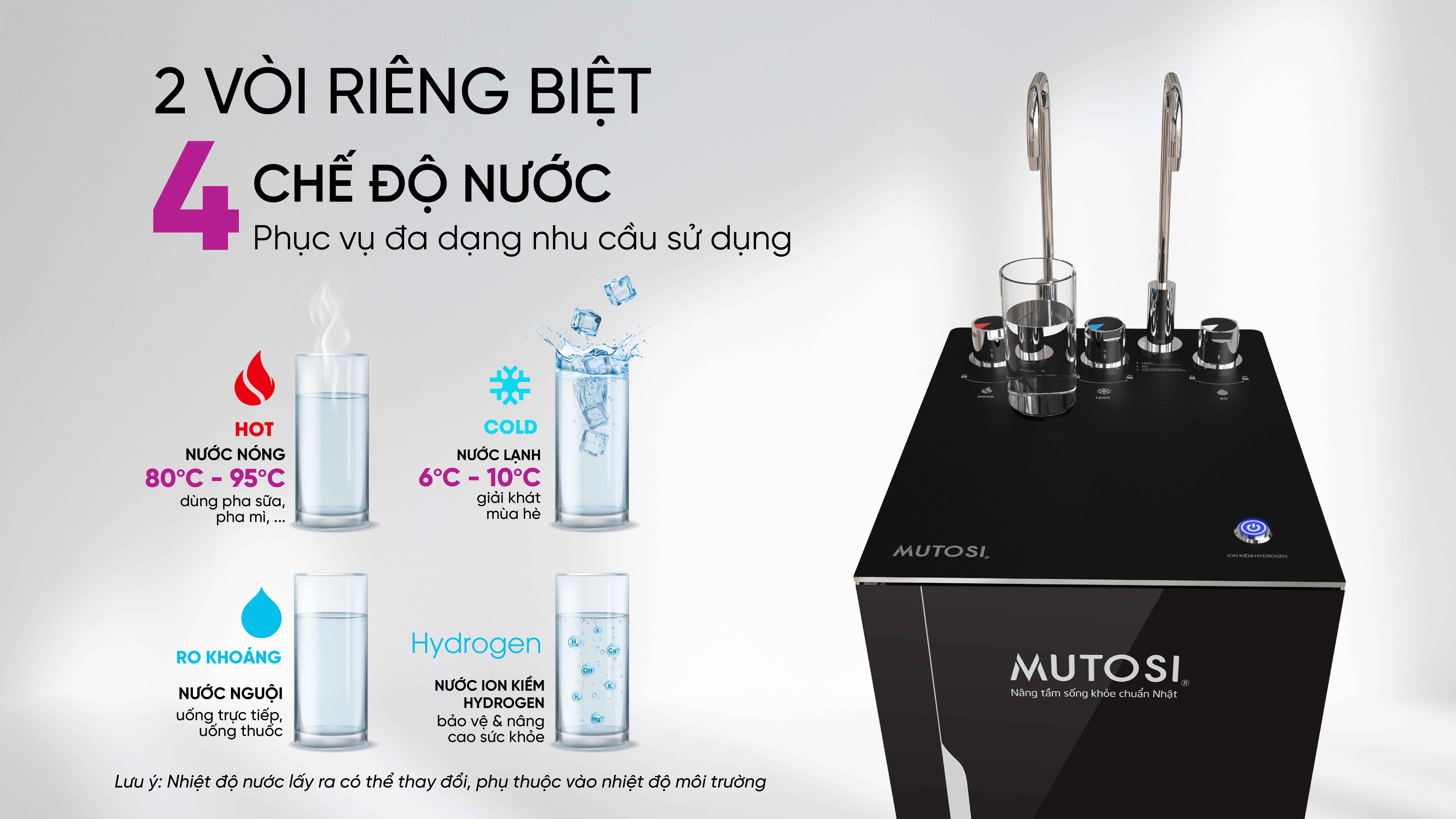 Nóng 80 - 95°C (Nhiệt độ nước thực tế sẽ phụ thuộc vào nhiệt độ môi trường và thể tích nước lấy ra)