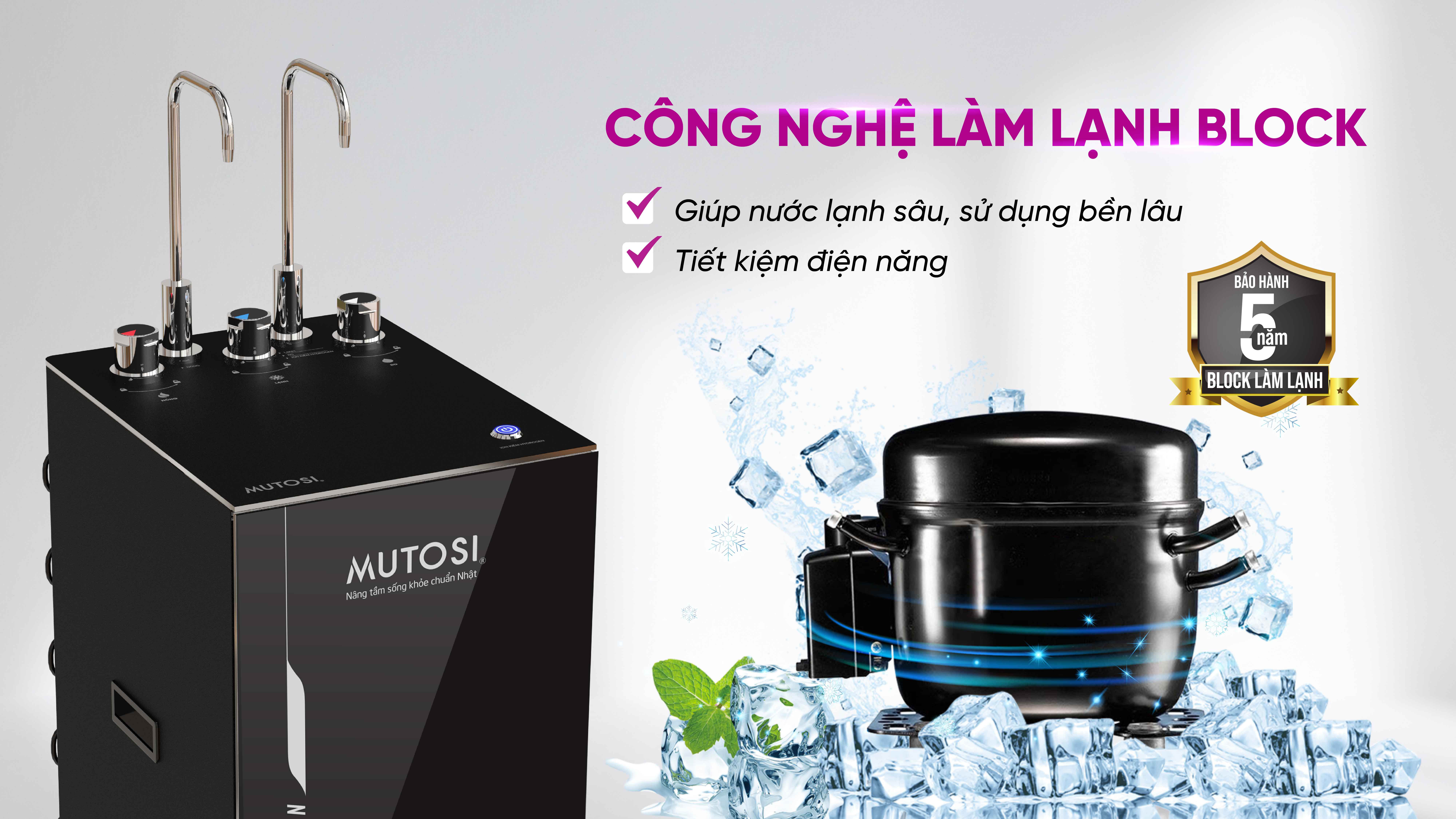 Đặc biệt Mutosi có chế độ bảo hành dài hạn nhất thị trường, 5 năm cho công nghệ làm lạnh Block
